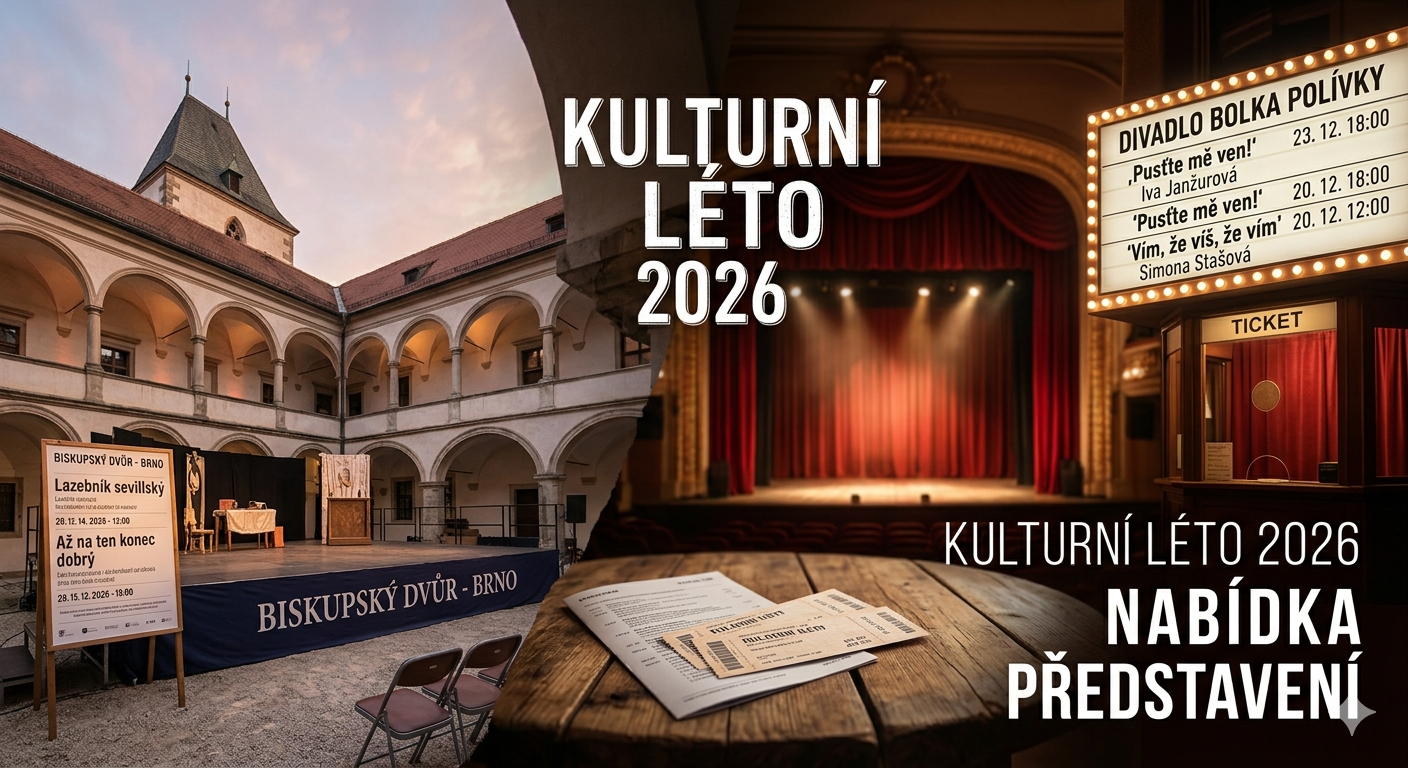 Vážení kolegové a milovníci kultury, pan Jaromír Ticháček z naší knihovny pro vás připravil bohatý výběr divadelních představení. Vybírat můžete jak z hostujících představení v Divadle Bolka Polívky, tak z letních večerů pod širým nebem na Biskupském dvoře.